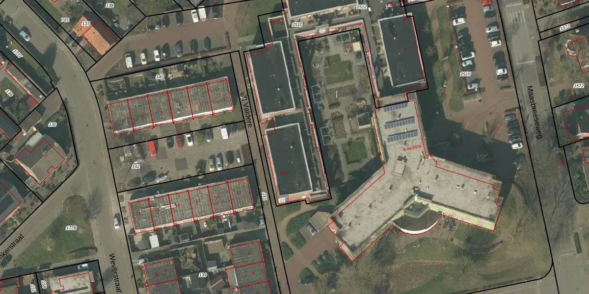 't Valdere 33 is gelegen op kadastraal perceel SVN01L2510. Deze kadastrale aanduiding is uniek en wordt gebruikt door het Kadaster om eigendomsrechten en andere zakelijke rechten vast te leggen. Het perceel maakt onderdeel uit van de kadastrale gemeente Sevenum.