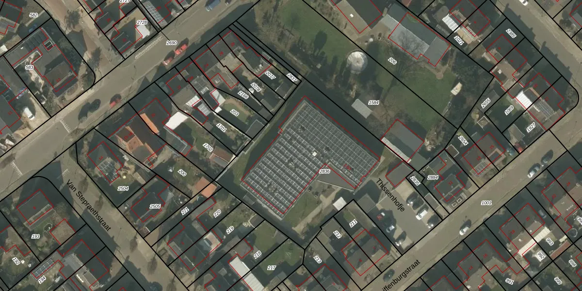 Thissenhofje 14 is gelegen op kadastraal perceel SVN01L2836. Deze kadastrale aanduiding is uniek en wordt gebruikt door het Kadaster om eigendomsrechten en andere zakelijke rechten vast te leggen. Het perceel maakt onderdeel uit van de kadastrale gemeente Sevenum.