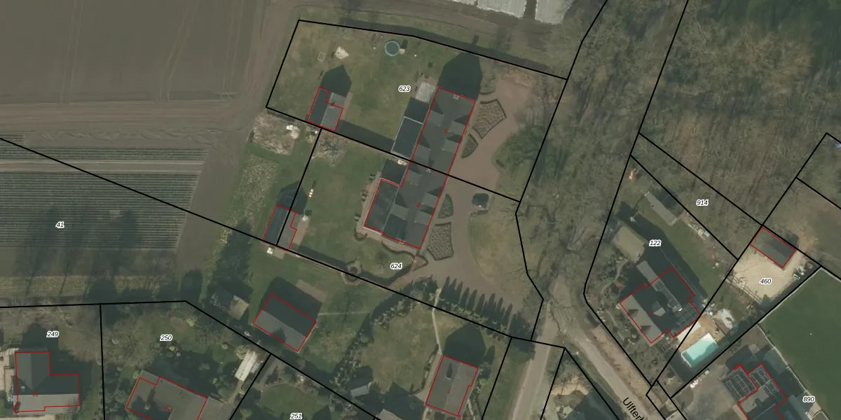 Het perceel waarop Ulfterhoek 3 staat heeft een oppervlakte van 1775 m². Dit is een zeer groot perceel. De perceeloppervlakte wordt geregistreerd door het Kadaster. Gedetailleerde informatie over de maten van dit perceel kunt u vinden in het rapport Kadastrale kaart met maatvoering van Ulfterhoek 3.