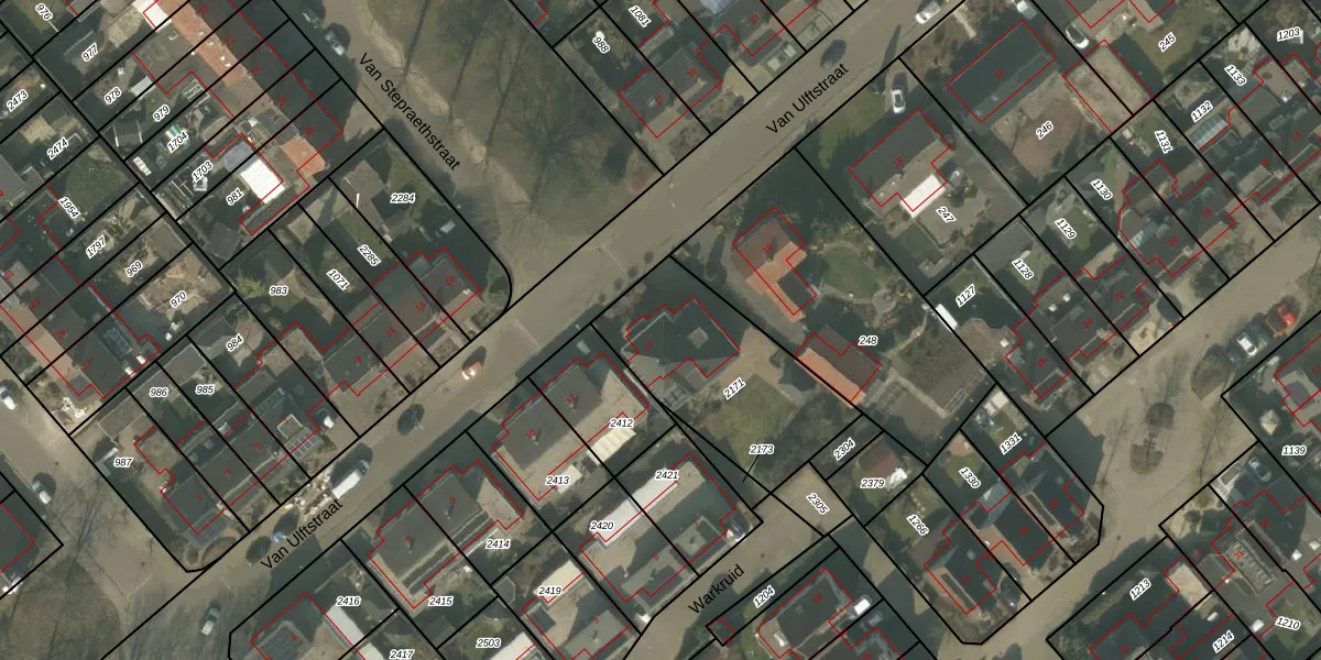Van Ulftstraat 14 is gelegen op kadastraal perceel SVN01L2171. Deze kadastrale aanduiding is uniek en wordt gebruikt door het Kadaster om eigendomsrechten en andere zakelijke rechten vast te leggen. Het perceel maakt onderdeel uit van de kadastrale gemeente Sevenum.