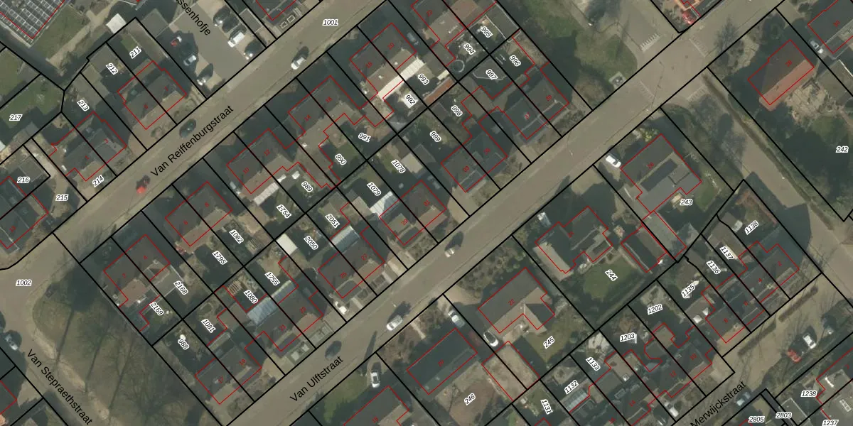 Het perceel waarop Van Ulftstraat 31 staat heeft een oppervlakte van 245 m². Dit is een middelgroot perceel. De perceeloppervlakte wordt geregistreerd door het Kadaster. Gedetailleerde informatie over de maten van dit perceel kunt u vinden in het rapport Kadastrale kaart met maatvoering van Van Ulftstraat 31.