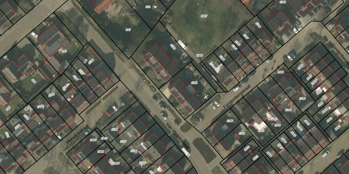 Het perceel waarop Van Vlattenstraat 17 staat heeft een oppervlakte van 554 m². Dit is een groot perceel. De perceeloppervlakte wordt geregistreerd door het Kadaster. Gedetailleerde informatie over de maten van dit perceel kunt u vinden in het rapport Kadastrale kaart met maatvoering van Van Vlattenstraat 17.