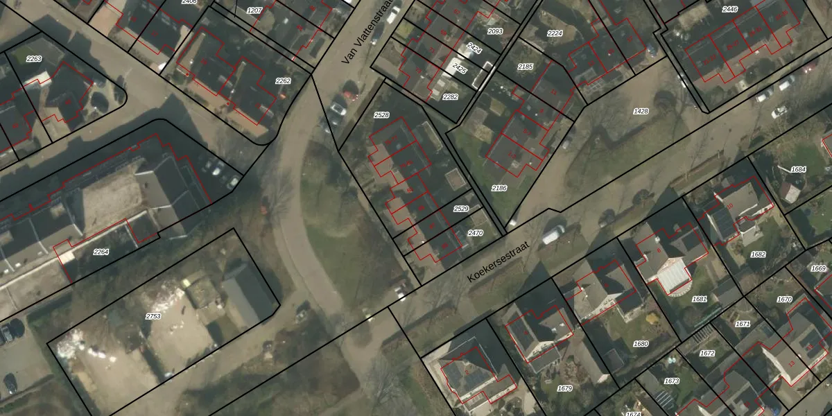 Het perceel waarop Van Vlattenstraat 85 staat heeft een oppervlakte van 654 m². Dit is een groot perceel. De perceeloppervlakte wordt geregistreerd door het Kadaster. Gedetailleerde informatie over de maten van dit perceel kunt u vinden in het rapport Kadastrale kaart met maatvoering van Van Vlattenstraat 85.