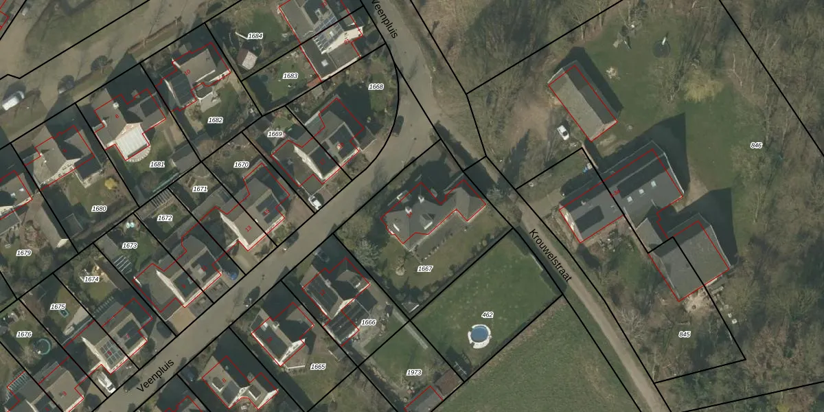 Het perceel waarop Veenpluis 14 staat heeft een oppervlakte van 953 m². Dit is een groot perceel. De perceeloppervlakte wordt geregistreerd door het Kadaster. Gedetailleerde informatie over de maten van dit perceel kunt u vinden in het rapport Kadastrale kaart met maatvoering van Veenpluis 14.