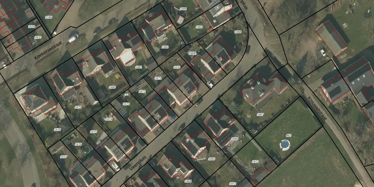 Het perceel waarop Veenpluis 15 staat heeft een oppervlakte van 328 m². Dit is een groot perceel. De perceeloppervlakte wordt geregistreerd door het Kadaster. Gedetailleerde informatie over de maten van dit perceel kunt u vinden in het rapport Kadastrale kaart met maatvoering van Veenpluis 15.