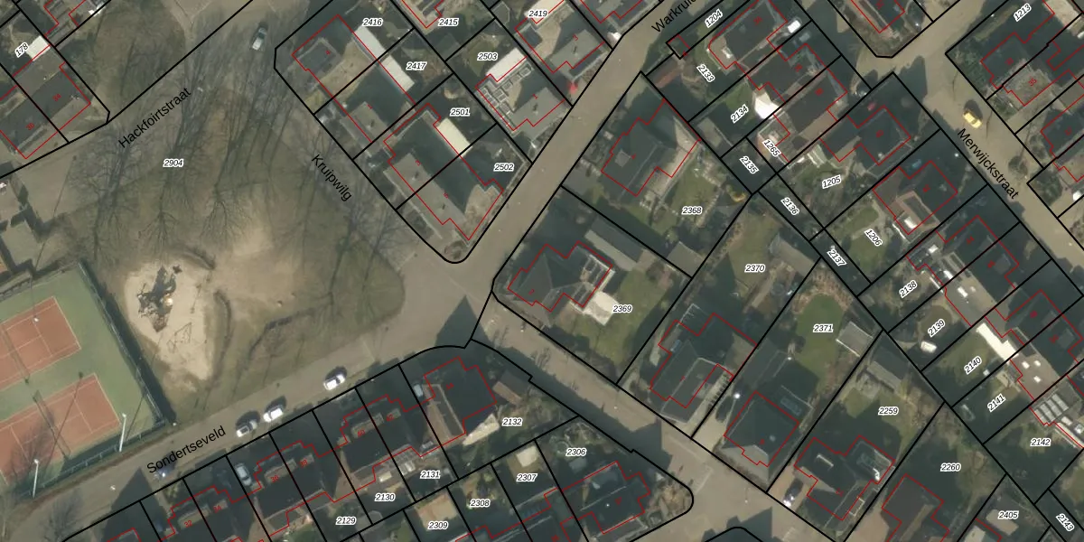 Het perceel waarop Warkruid 2 staat heeft een oppervlakte van 713 m². Dit is een groot perceel. De perceeloppervlakte wordt geregistreerd door het Kadaster. Gedetailleerde informatie over de maten van dit perceel kunt u vinden in het rapport Kadastrale kaart met maatvoering van Warkruid 2.