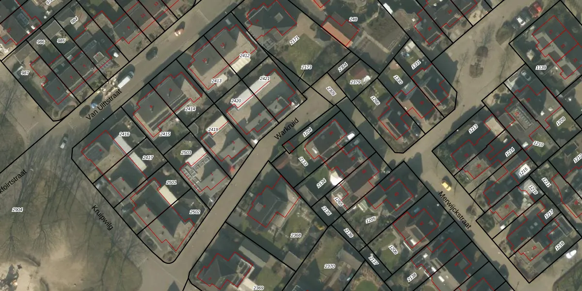 Gebruik de zoekbalk of klik op een perceel voor informatie over de adressen binnen dit perceel.