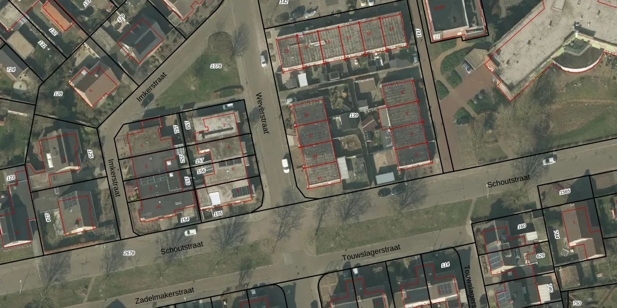 Het perceel waarop Weverstraat 29 staat heeft een oppervlakte van 2725 m². Dit is een zeer groot perceel. De perceeloppervlakte wordt geregistreerd door het Kadaster. Gedetailleerde informatie over de maten van dit perceel kunt u vinden in het rapport Kadastrale kaart met maatvoering van Weverstraat 29.