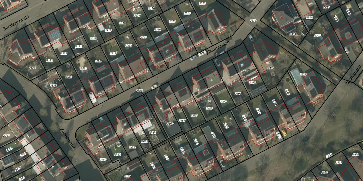 Zilverschoon 16 is gelegen op kadastraal perceel SVN01L2488. Deze kadastrale aanduiding is uniek en wordt gebruikt door het Kadaster om eigendomsrechten en andere zakelijke rechten vast te leggen. Het perceel maakt onderdeel uit van de kadastrale gemeente Sevenum.