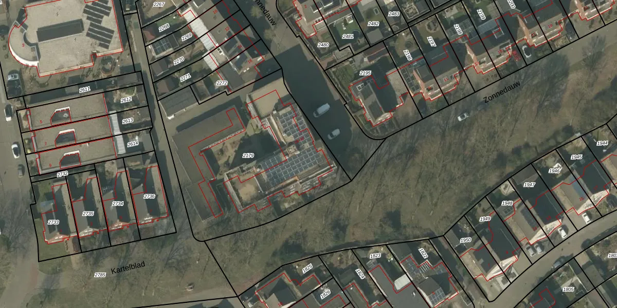 Het perceel waarop Zonnedauw 24 staat heeft een oppervlakte van 2122 m². Dit is een zeer groot perceel. De perceeloppervlakte wordt geregistreerd door het Kadaster. Gedetailleerde informatie over de maten van dit perceel kunt u vinden in het rapport Kadastrale kaart met maatvoering van Zonnedauw 24.