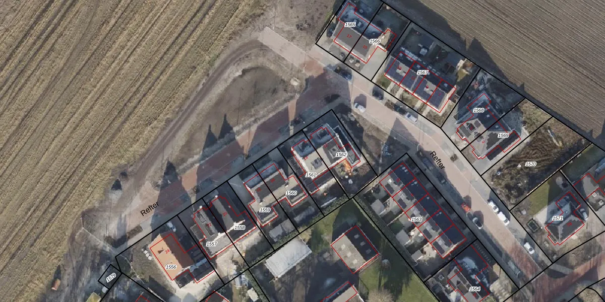 Het perceel waarop Refter 14 staat heeft een oppervlakte van 280 m². Dit is een middelgroot perceel. De perceeloppervlakte wordt geregistreerd door het Kadaster. Gedetailleerde informatie over de maten van dit perceel kunt u vinden in het rapport Kadastrale kaart met maatvoering van Refter 14.