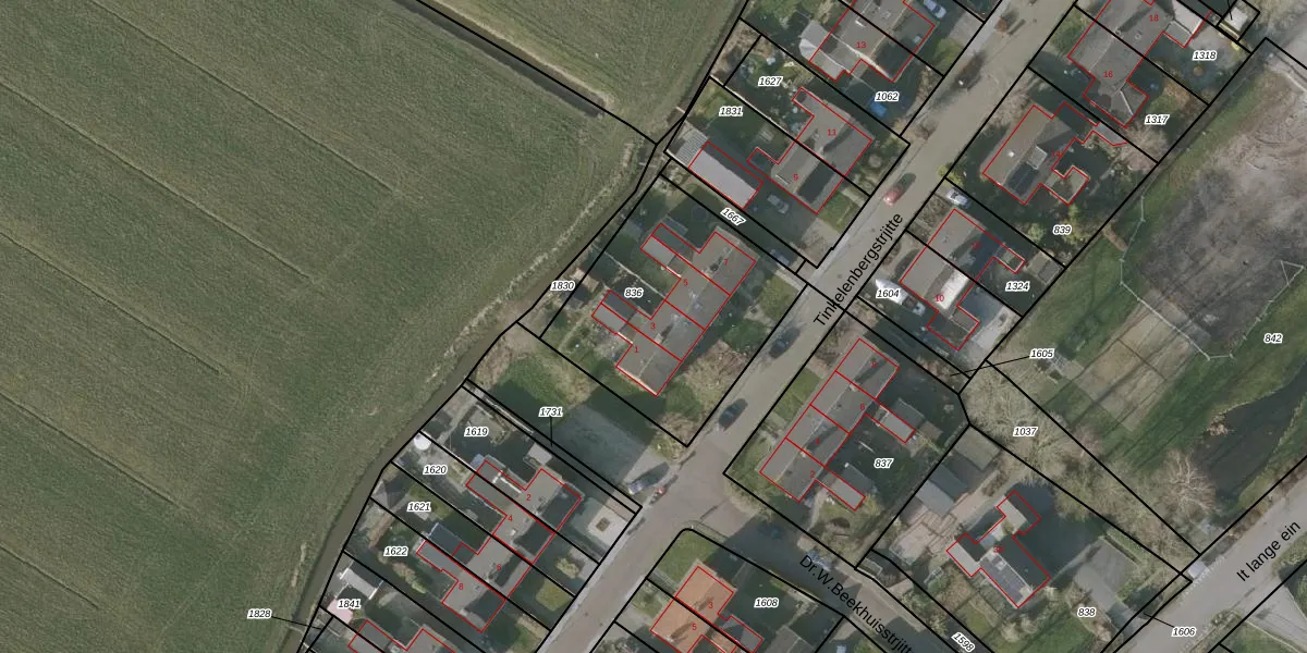 Het perceel waarop Tinkelenbergstrjitte 3 staat heeft een oppervlakte van 880 m². Dit is een groot perceel. De perceeloppervlakte wordt geregistreerd door het Kadaster. Gedetailleerde informatie over de maten van dit perceel kunt u vinden in het rapport Kadastrale kaart met maatvoering van Tinkelenbergstrjitte 3.