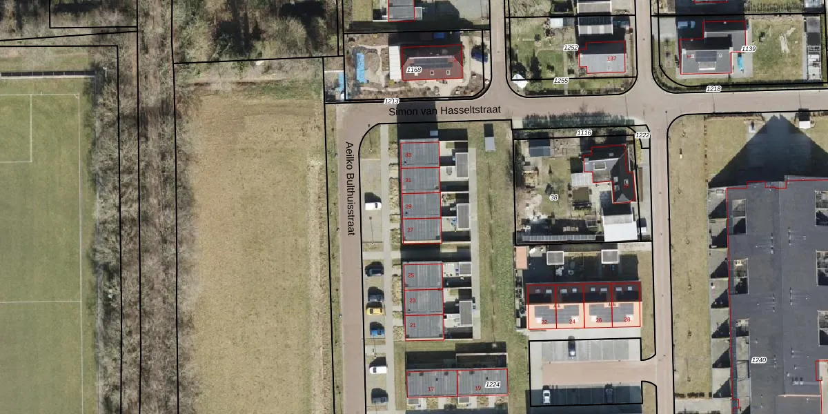 Het perceel waarop Aeilko Bulthuisstraat 29 staat heeft een oppervlakte van 6495 m². Dit is een zeer groot perceel. De perceeloppervlakte wordt geregistreerd door het Kadaster. Gedetailleerde informatie over de maten van dit perceel kunt u vinden in het rapport Kadastrale kaart met maatvoering van Aeilko Bulthuisstraat 29.