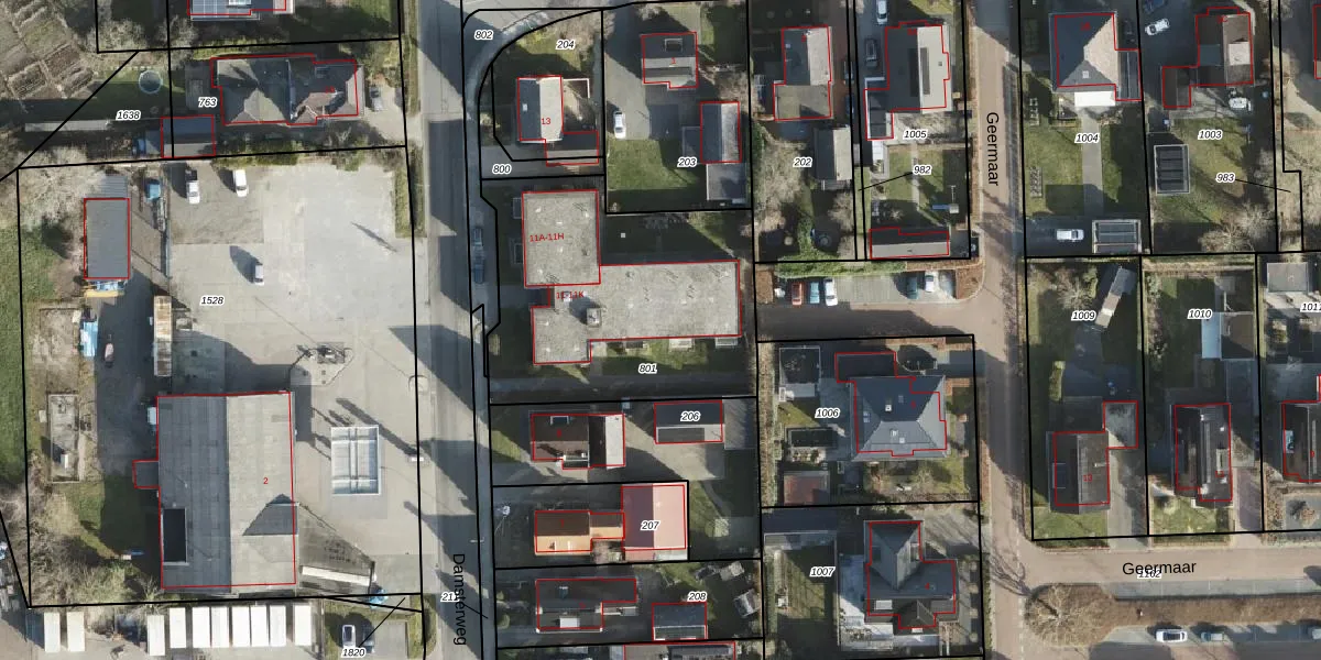Damsterweg 11-D is gelegen op kadastraal perceel STR02N801. Deze kadastrale aanduiding is uniek en wordt gebruikt door het Kadaster om eigendomsrechten en andere zakelijke rechten vast te leggen. Het perceel maakt onderdeel uit van de kadastrale gemeente Slochteren.