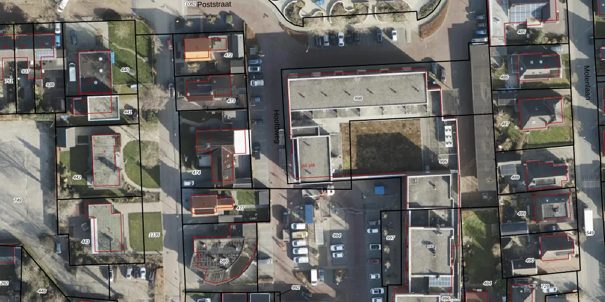 Het perceel waarop Hoofdweg 166-A staat heeft een oppervlakte van 1705 m². Dit is een zeer groot perceel. De perceeloppervlakte wordt geregistreerd door het Kadaster. Gedetailleerde informatie over de maten van dit perceel kunt u vinden in het rapport Kadastrale kaart met maatvoering van Hoofdweg 166-A.