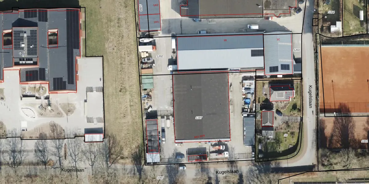 Het perceel waarop Kugelslaan 3-A-9 staat heeft een oppervlakte van 2965 m². Dit is een zeer groot perceel. De perceeloppervlakte wordt geregistreerd door het Kadaster. Gedetailleerde informatie over de maten van dit perceel kunt u vinden in het rapport Kadastrale kaart met maatvoering van Kugelslaan 3-A-9.