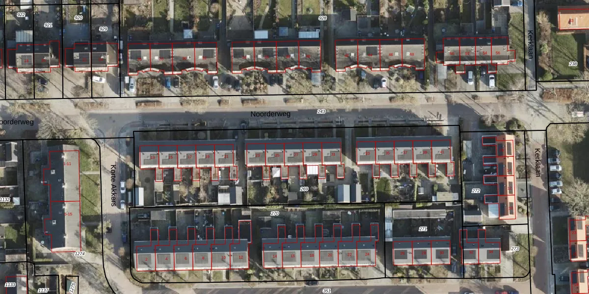Het perceel waarop Noorderweg 27 staat heeft een oppervlakte van 2885 m². Dit is een zeer groot perceel. De perceeloppervlakte wordt geregistreerd door het Kadaster. Gedetailleerde informatie over de maten van dit perceel kunt u vinden in het rapport Kadastrale kaart met maatvoering van Noorderweg 27.