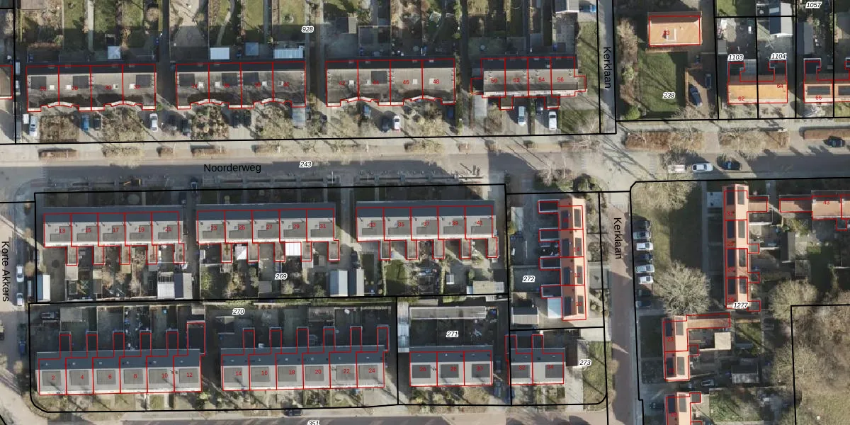 Het perceel waarop Noorderweg 37 staat heeft een oppervlakte van 2885 m². Dit is een zeer groot perceel. De perceeloppervlakte wordt geregistreerd door het Kadaster. Gedetailleerde informatie over de maten van dit perceel kunt u vinden in het rapport Kadastrale kaart met maatvoering van Noorderweg 37.