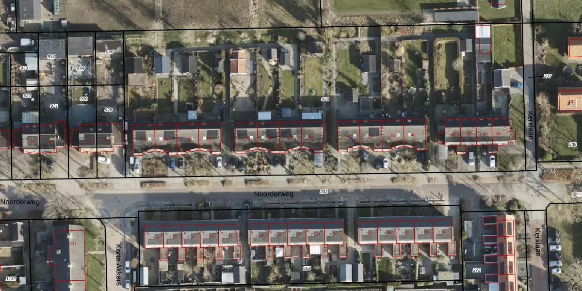 Het perceel waarop Noorderweg 38 staat heeft een oppervlakte van 6933 m². Dit is een zeer groot perceel. De perceeloppervlakte wordt geregistreerd door het Kadaster. Gedetailleerde informatie over de maten van dit perceel kunt u vinden in het rapport Kadastrale kaart met maatvoering van Noorderweg 38.