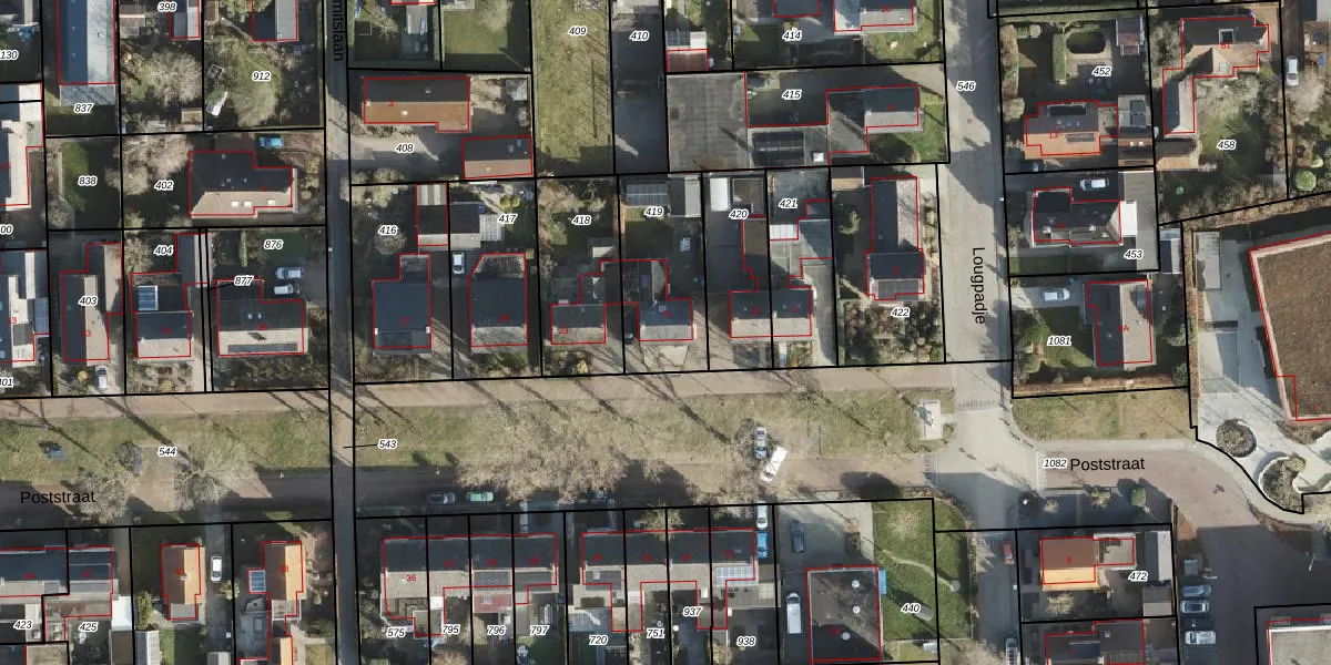 Gebruik de zoekbalk of klik op een perceel voor informatie over de adressen binnen dit perceel.