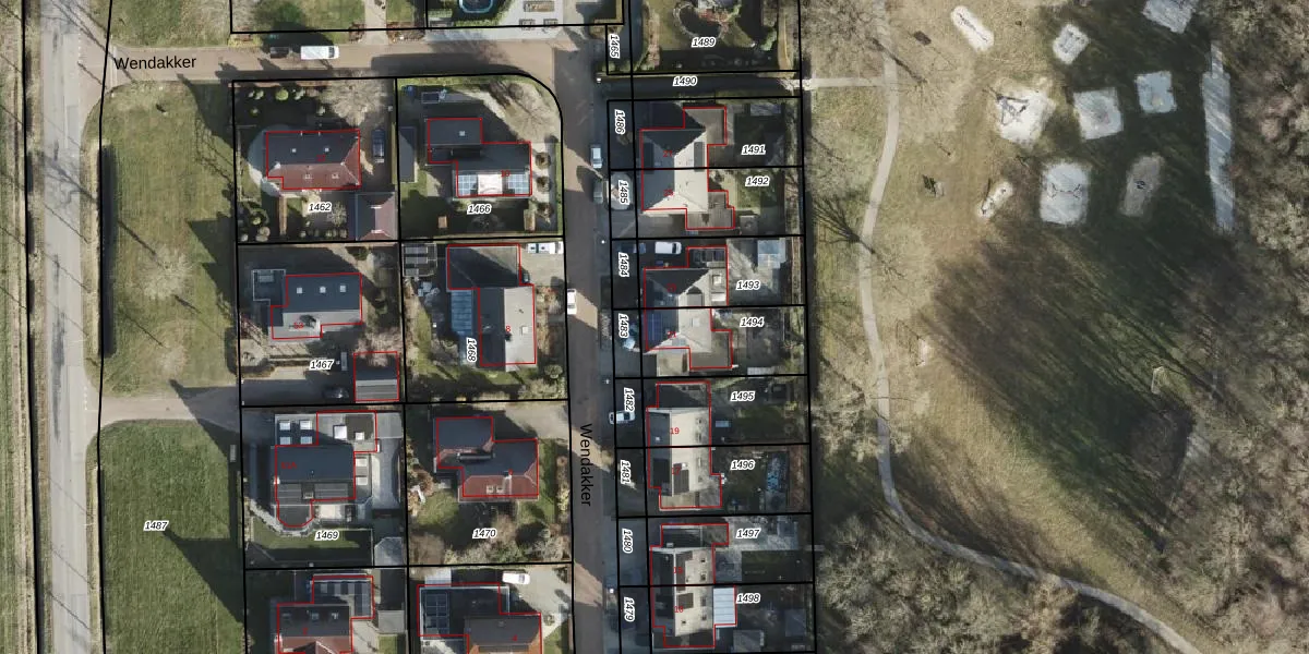 Wendakker 21 is gelegen op kadastraal perceel STR02T1494. Deze kadastrale aanduiding is uniek en wordt gebruikt door het Kadaster om eigendomsrechten en andere zakelijke rechten vast te leggen. Het perceel maakt onderdeel uit van de kadastrale gemeente Slochteren.