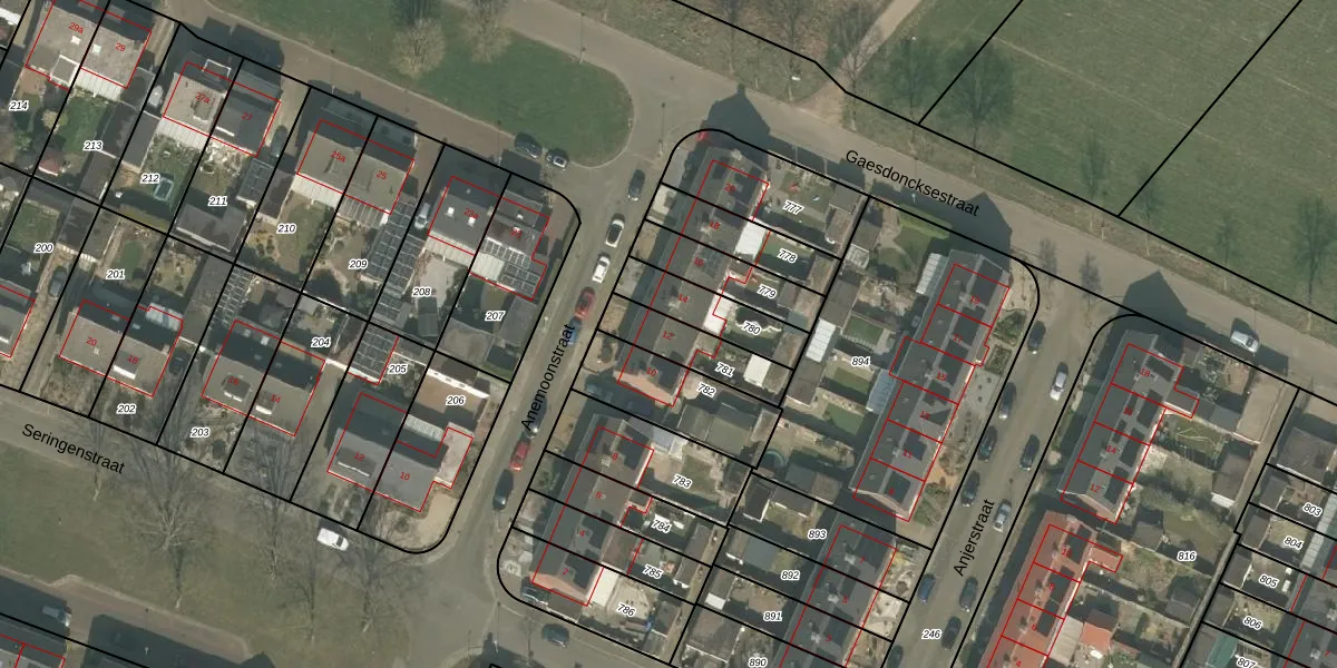 Het perceel waarop Anemoonstraat 12 staat heeft een oppervlakte van 178 m². Dit is een middelgroot perceel. De perceeloppervlakte wordt geregistreerd door het Kadaster. Gedetailleerde informatie over de maten van dit perceel kunt u vinden in het rapport Kadastrale kaart met maatvoering van Anemoonstraat 12.