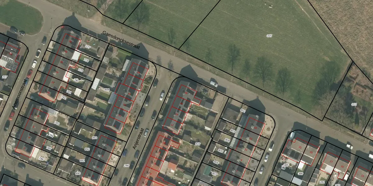 Het perceel waarop Anjerstraat 18 staat heeft een oppervlakte van 2350 m². Dit is een zeer groot perceel. De perceeloppervlakte wordt geregistreerd door het Kadaster. Gedetailleerde informatie over de maten van dit perceel kunt u vinden in het rapport Kadastrale kaart met maatvoering van Anjerstraat 18.