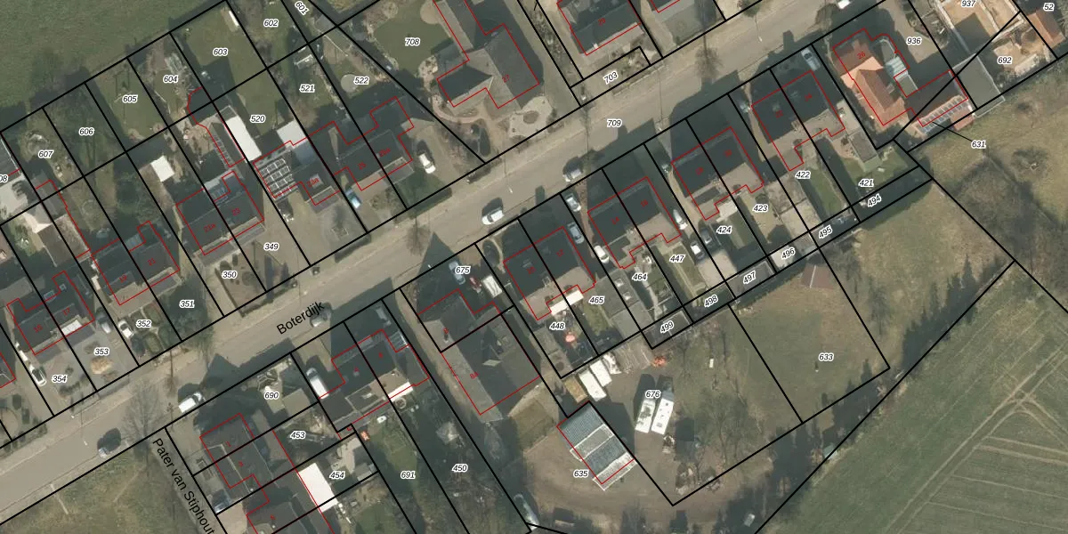 Boterdijk 10 is gelegen op kadastraal perceel BGN02K448. Deze kadastrale aanduiding is uniek en wordt gebruikt door het Kadaster om eigendomsrechten en andere zakelijke rechten vast te leggen. Het perceel maakt onderdeel uit van de kadastrale gemeente Bergen Limburg.