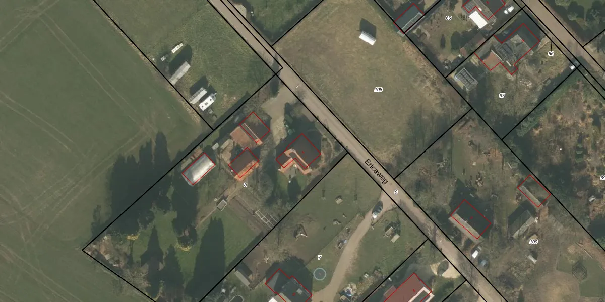 Het perceel waarop Ericaweg 4 staat heeft een oppervlakte van 3163 m². Dit is een zeer groot perceel. De perceeloppervlakte wordt geregistreerd door het Kadaster. Gedetailleerde informatie over de maten van dit perceel kunt u vinden in het rapport Kadastrale kaart met maatvoering van Ericaweg 4.