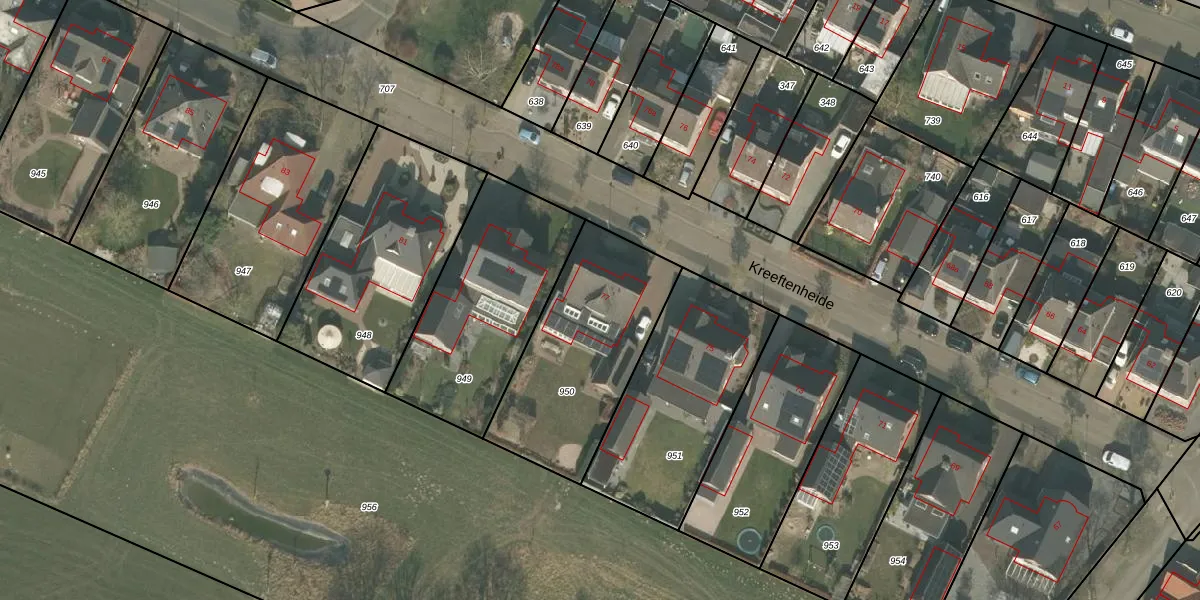Het perceel waarop Kreeftenheide 77 staat heeft een oppervlakte van 722 m². Dit is een groot perceel. De perceeloppervlakte wordt geregistreerd door het Kadaster. Gedetailleerde informatie over de maten van dit perceel kunt u vinden in het rapport Kadastrale kaart met maatvoering van Kreeftenheide 77.