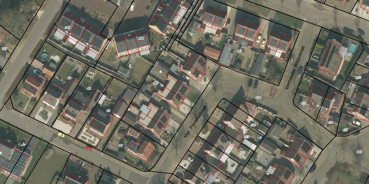 Mgr. Paredisstraat 12 is gelegen op kadastraal perceel BGN02K480. Deze kadastrale aanduiding is uniek en wordt gebruikt door het Kadaster om eigendomsrechten en andere zakelijke rechten vast te leggen. Het perceel maakt onderdeel uit van de kadastrale gemeente Bergen Limburg.