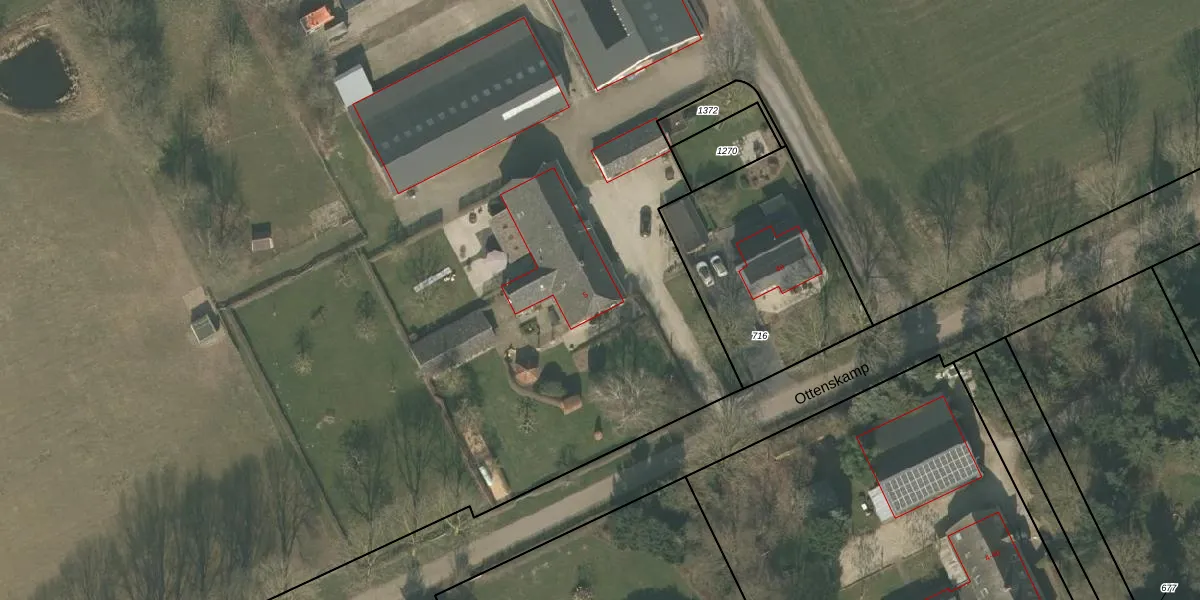 Het perceel waarop Ottenskamp 5 staat heeft een oppervlakte van 8,3 ha. Dit is een zeer groot perceel. De perceeloppervlakte wordt geregistreerd door het Kadaster. Gedetailleerde informatie over de maten van dit perceel kunt u vinden in het rapport Kadastrale kaart met maatvoering van Ottenskamp 5.
