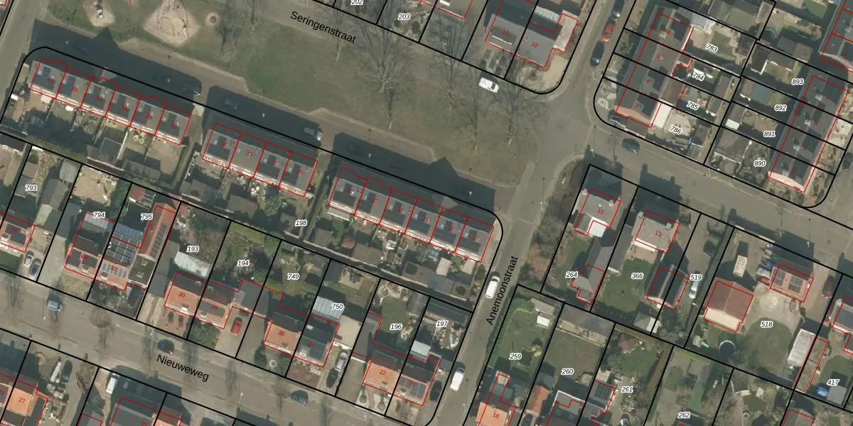 Het perceel waarop Seringenstraat 21 staat heeft een oppervlakte van 2745 m². Dit is een zeer groot perceel. De perceeloppervlakte wordt geregistreerd door het Kadaster. Gedetailleerde informatie over de maten van dit perceel kunt u vinden in het rapport Kadastrale kaart met maatvoering van Seringenstraat 21.