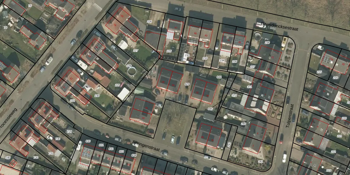 Het perceel waarop Seringenstraat 34 staat heeft een oppervlakte van 2065 m². Dit is een zeer groot perceel. De perceeloppervlakte wordt geregistreerd door het Kadaster. Gedetailleerde informatie over de maten van dit perceel kunt u vinden in het rapport Kadastrale kaart met maatvoering van Seringenstraat 34.