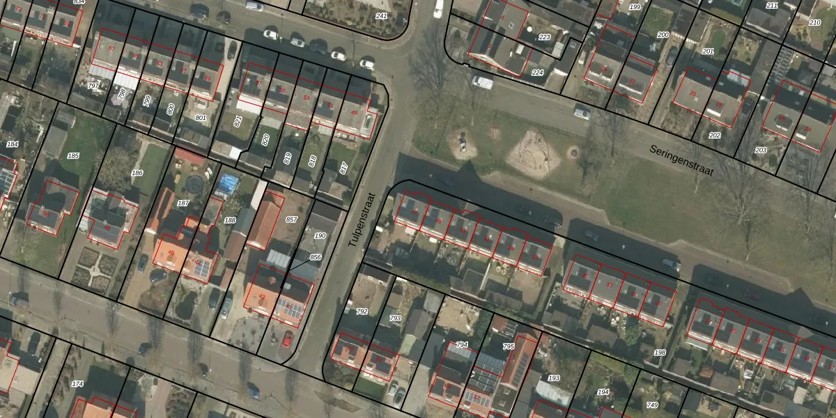 Het perceel waarop Seringenstraat 47 staat heeft een oppervlakte van 2745 m². Dit is een zeer groot perceel. De perceeloppervlakte wordt geregistreerd door het Kadaster. Gedetailleerde informatie over de maten van dit perceel kunt u vinden in het rapport Kadastrale kaart met maatvoering van Seringenstraat 47.