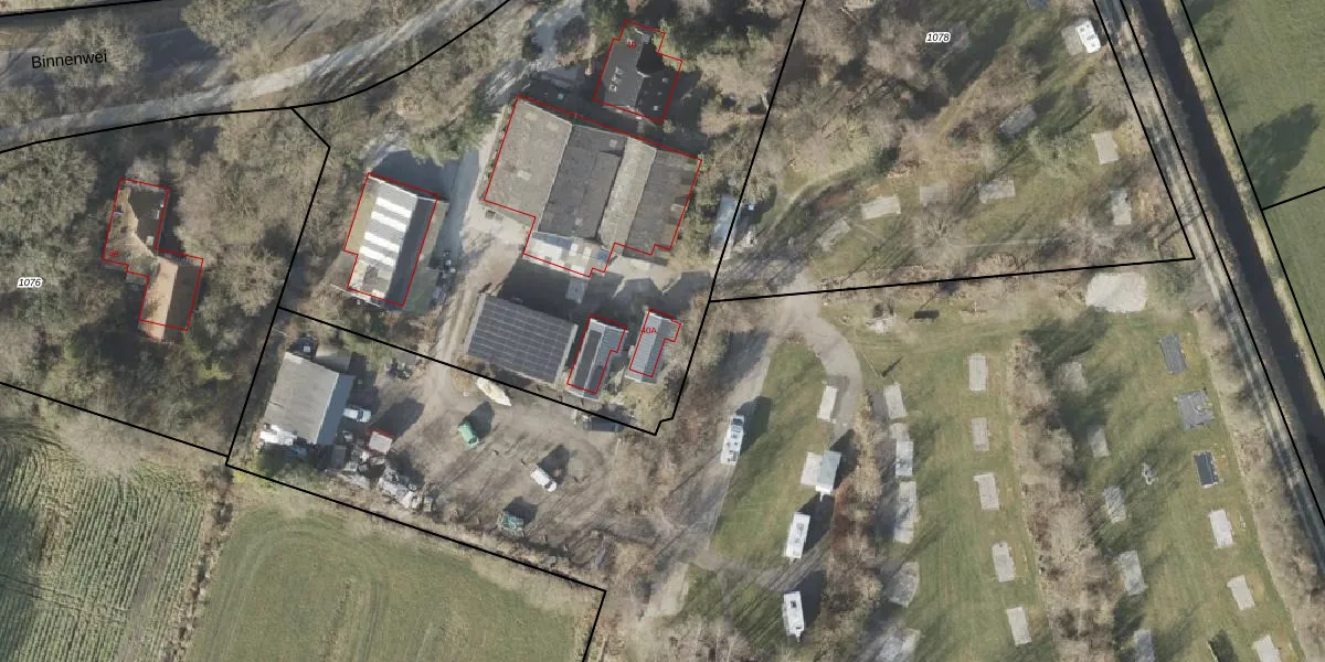 Het perceel waarop Binnenwei 40-A staat heeft een oppervlakte van 4440 m². Dit is een zeer groot perceel. De perceeloppervlakte wordt geregistreerd door het Kadaster. Gedetailleerde informatie over de maten van dit perceel kunt u vinden in het rapport Kadastrale kaart met maatvoering van Binnenwei 40-A.