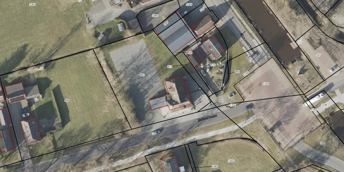 Binnenwei 53 is gelegen op kadastraal perceel URT00G882. Deze kadastrale aanduiding is uniek en wordt gebruikt door het Kadaster om eigendomsrechten en andere zakelijke rechten vast te leggen. Het perceel maakt onderdeel uit van de kadastrale gemeente Ureterp.