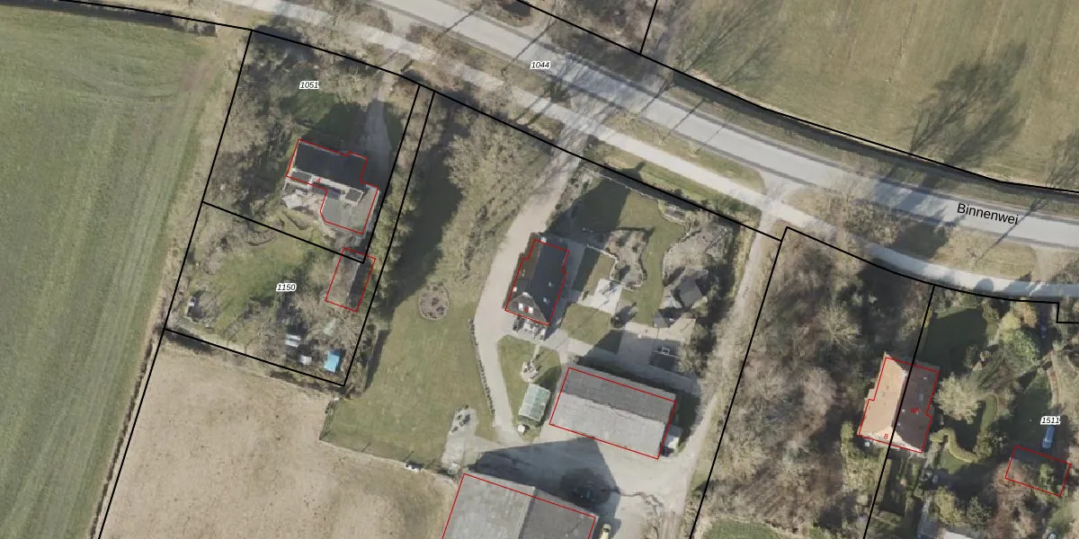 Het perceel waarop Binnenwei 6 staat heeft een oppervlakte van 4,1 ha. Dit is een zeer groot perceel. De perceeloppervlakte wordt geregistreerd door het Kadaster. Gedetailleerde informatie over de maten van dit perceel kunt u vinden in het rapport Kadastrale kaart met maatvoering van Binnenwei 6.