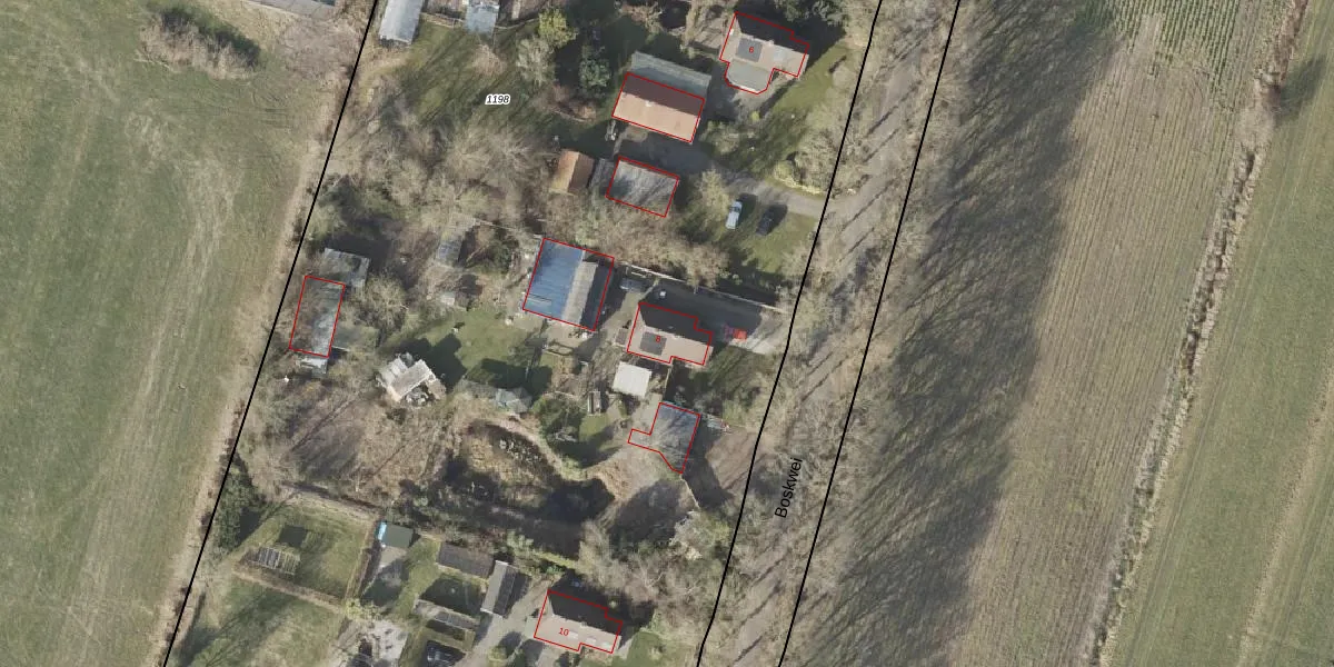 Het perceel waarop Boskwei 8 staat heeft een oppervlakte van 2,1 ha. Dit is een zeer groot perceel. De perceeloppervlakte wordt geregistreerd door het Kadaster. Gedetailleerde informatie over de maten van dit perceel kunt u vinden in het rapport Kadastrale kaart met maatvoering van Boskwei 8.
