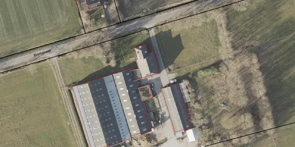 Het perceel waarop Bremerwei 24 staat heeft een oppervlakte van 2,8 ha. Dit is een zeer groot perceel. De perceeloppervlakte wordt geregistreerd door het Kadaster. Gedetailleerde informatie over de maten van dit perceel kunt u vinden in het rapport Kadastrale kaart met maatvoering van Bremerwei 24.