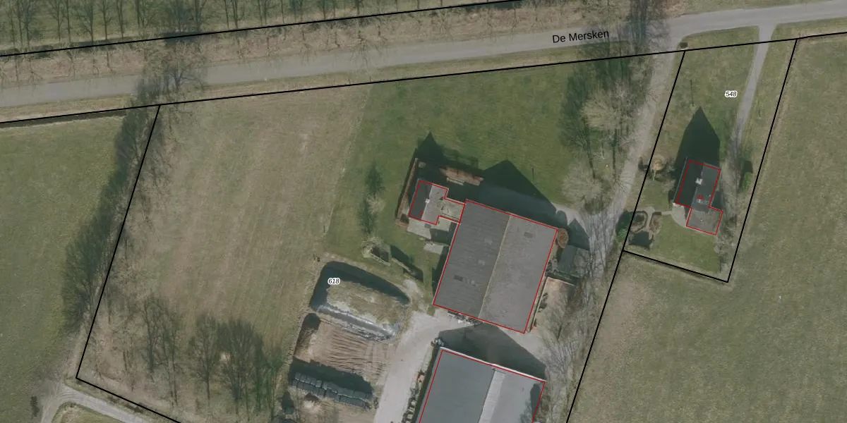 Het perceel waarop De Mersken 2 staat heeft een oppervlakte van 1,1 ha. Dit is een zeer groot perceel. De perceeloppervlakte wordt geregistreerd door het Kadaster. Gedetailleerde informatie over de maten van dit perceel kunt u vinden in het rapport Kadastrale kaart met maatvoering van De Mersken 2.