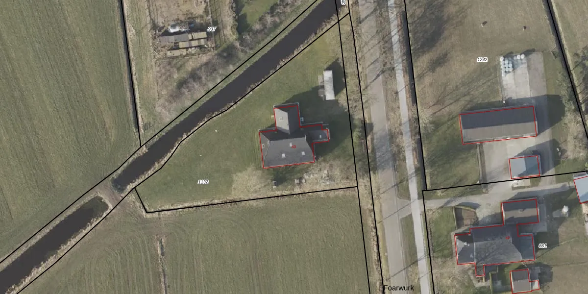 Het perceel waarop Foarwurk 43 staat heeft een oppervlakte van 2540 m². Dit is een zeer groot perceel. De perceeloppervlakte wordt geregistreerd door het Kadaster. Gedetailleerde informatie over de maten van dit perceel kunt u vinden in het rapport Kadastrale kaart met maatvoering van Foarwurk 43.