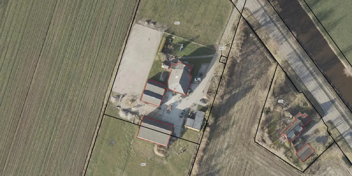 Het adres is gelegen op perceel 952 in de sectie G en de kadastrale gemeente Ureterp. De kadastrale aanduiding is aldus URT00-G-952. De gemiddelde perceelgrootte in Ureterp is 8891,7 m². Dit perceel is kleiner: de perceeloppervlakte bedraagt 5637 m². De grootste perceeloppervlakte in de kadastrale gemeente is 27,7 ha. De kleinste oppervlakte bedraagt 1 m². Dit is het enige adres dat aanwezig is op het perceel. De huidige grenzen van het perceel zijn digitaal in de Basisregistratie Kadaster (BRK) geregistreerd op 23-02-2000.