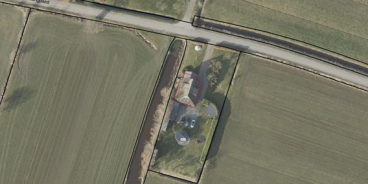 Het perceel waarop Langpaed 12 staat heeft een oppervlakte van 2075 m². Dit is een zeer groot perceel. De perceeloppervlakte wordt geregistreerd door het Kadaster. Gedetailleerde informatie over de maten van dit perceel kunt u vinden in het rapport Kadastrale kaart met maatvoering van Langpaed 12.