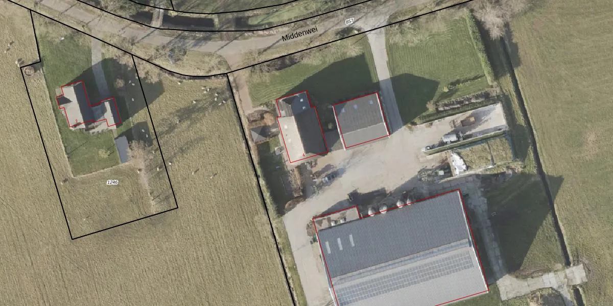 Het perceel waarop Middenwei 4 staat heeft een oppervlakte van 7,9 ha. Dit is een zeer groot perceel. De perceeloppervlakte wordt geregistreerd door het Kadaster. Gedetailleerde informatie over de maten van dit perceel kunt u vinden in het rapport Kadastrale kaart met maatvoering van Middenwei 4.