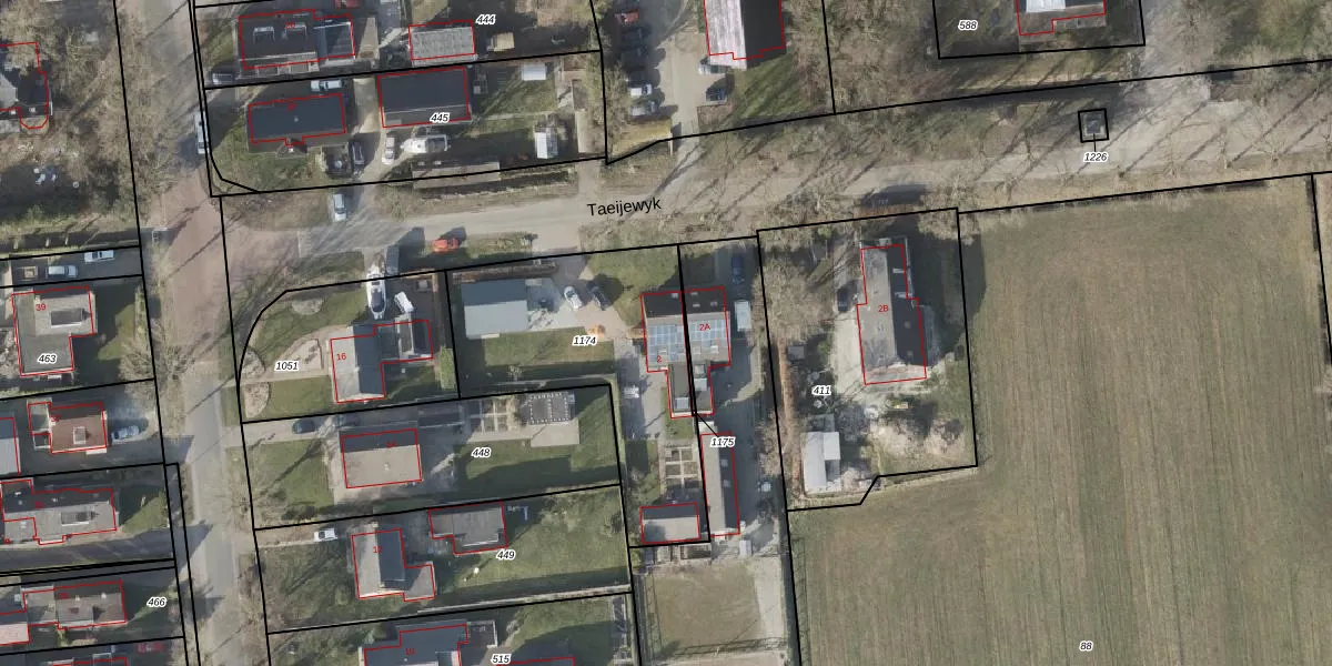 Taeijewyk 2 is gelegen op kadastraal perceel URT00G1174. Deze kadastrale aanduiding is uniek en wordt gebruikt door het Kadaster om eigendomsrechten en andere zakelijke rechten vast te leggen. Het perceel maakt onderdeel uit van de kadastrale gemeente Ureterp.