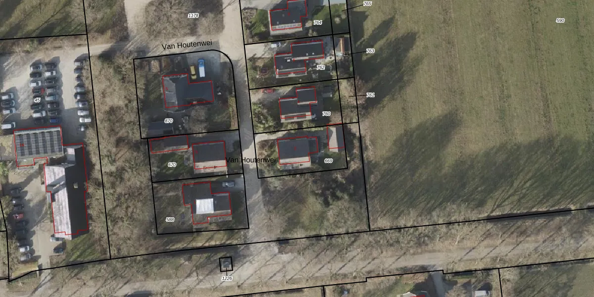 Van Houtenwei 2 is gelegen op kadastraal perceel URT00G669. Deze kadastrale aanduiding is uniek en wordt gebruikt door het Kadaster om eigendomsrechten en andere zakelijke rechten vast te leggen. Het perceel maakt onderdeel uit van de kadastrale gemeente Ureterp.