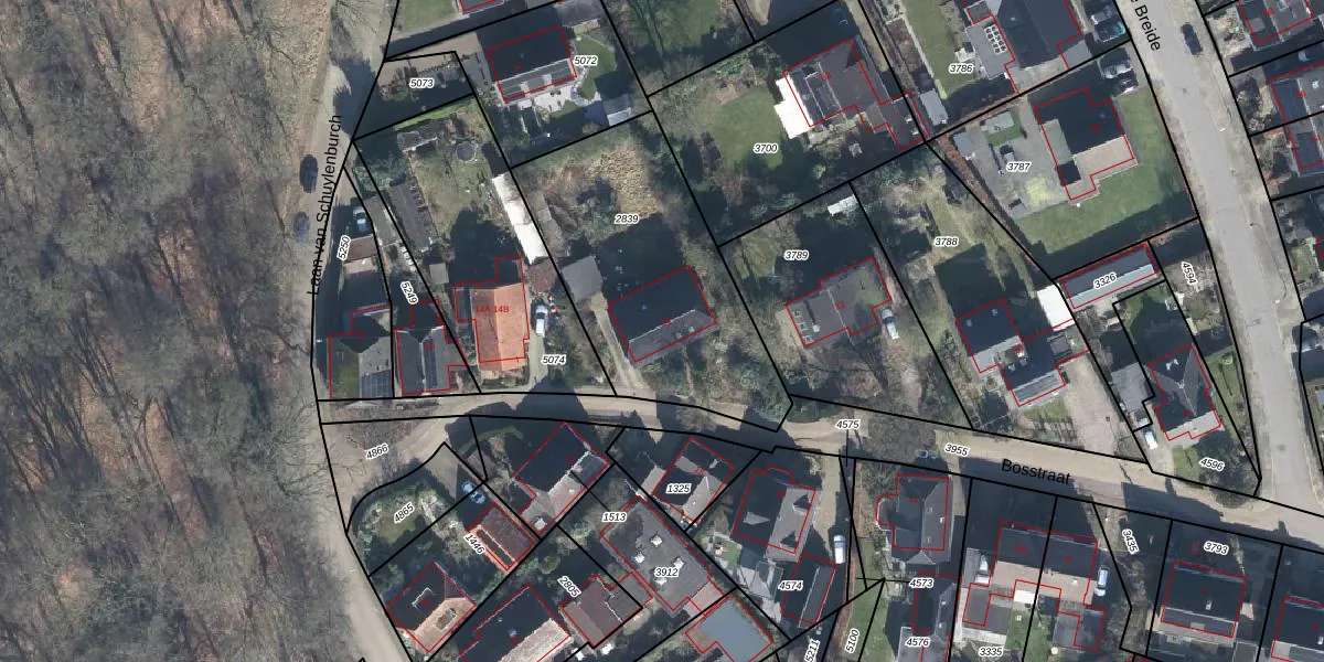 Het perceel waarop Bosstraat 14 staat heeft een oppervlakte van 1010 m². Dit is een zeer groot perceel. De perceeloppervlakte wordt geregistreerd door het Kadaster. Gedetailleerde informatie over de maten van dit perceel kunt u vinden in het rapport Kadastrale kaart met maatvoering van Bosstraat 14.