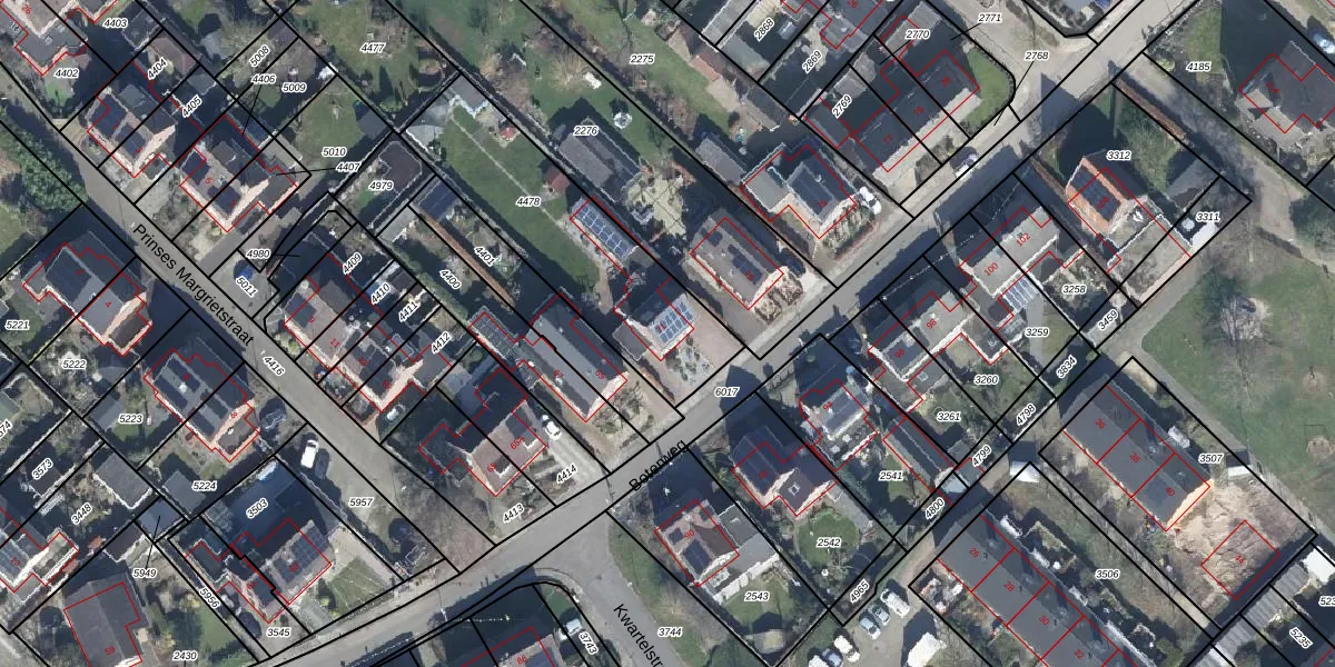 Het perceel waarop Boterweg 71 staat heeft een oppervlakte van 785 m². Dit is een groot perceel. De perceeloppervlakte wordt geregistreerd door het Kadaster. Gedetailleerde informatie over de maten van dit perceel kunt u vinden in het rapport Kadastrale kaart met maatvoering van Boterweg 71.