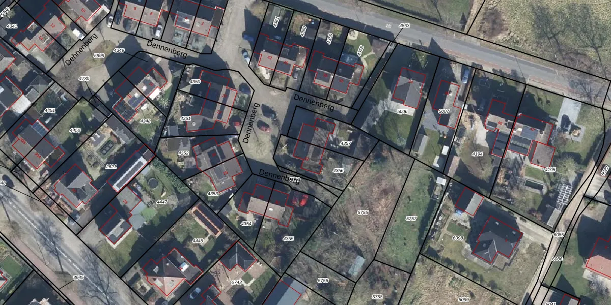 Het perceel waarop Dennenberg 32 staat heeft een oppervlakte van 262 m². Dit is een middelgroot perceel. De perceeloppervlakte wordt geregistreerd door het Kadaster. Gedetailleerde informatie over de maten van dit perceel kunt u vinden in het rapport Kadastrale kaart met maatvoering van Dennenberg 32.
